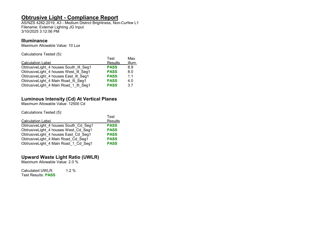 OBTRUSIVE LIGHTING CHECKS